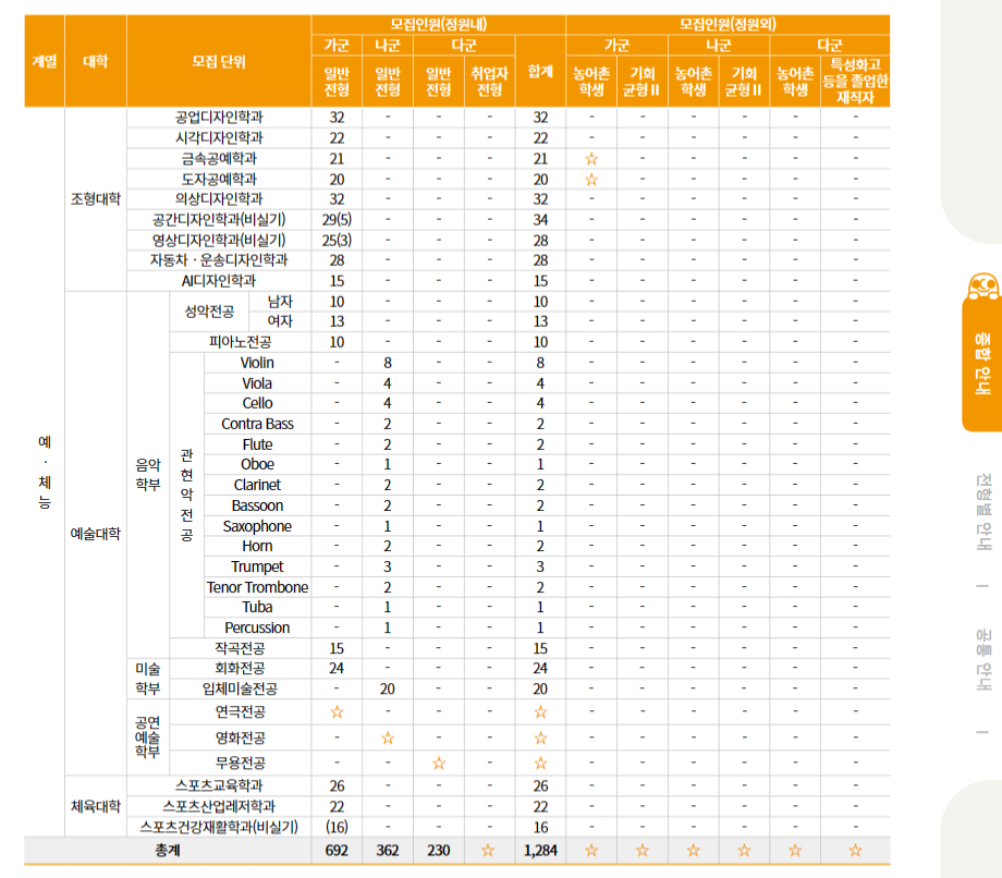 2024 정시(나) 국민대학교 원서접수/모집인원